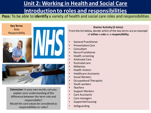 Unit 2 Level 3 Nqf Working In Health And Social Care Roles And Responsibilities Teaching Resources